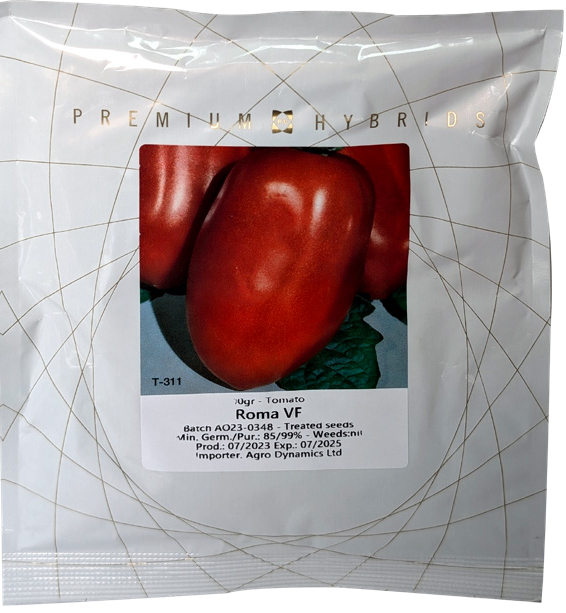 Roma VF tomato seeds, though an open pollinated variety, it is resistant to Fusarium Wilt and Verticillium Wilt. This variety matures in 75 – 95days.
