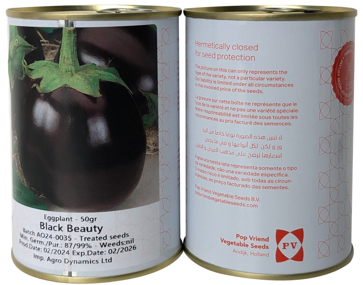 Eggplant black beauty is open pollinated variety that matures in 60-70 days and its dark purple and round 8-10cm in diameter. The flesh is firm and mild in flavor and its lovely when cooked.
