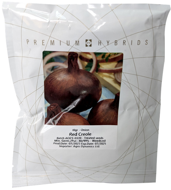 Red Creole is a medium maturing, open-pollinated short day red onion. Red Creole is well adapted and very widely planted. The outer scale is dark red; the rings are tight and red right through to the centre of the bulb. The bulbs taste slightly pungent, are firm, with a granex shape. The bulbs are attractive and store well.