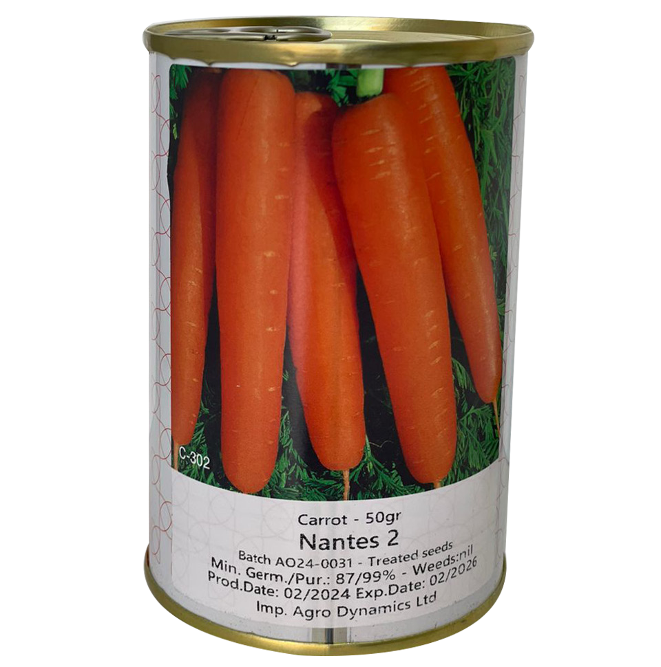 Nantes is a long straight tasty carrot variety with a very attractive internal flesh with high vitamin A content. The carrots are cylindrical, straight with a rounded tip and matures in 110 days from planting measuring 17-20cm long.
