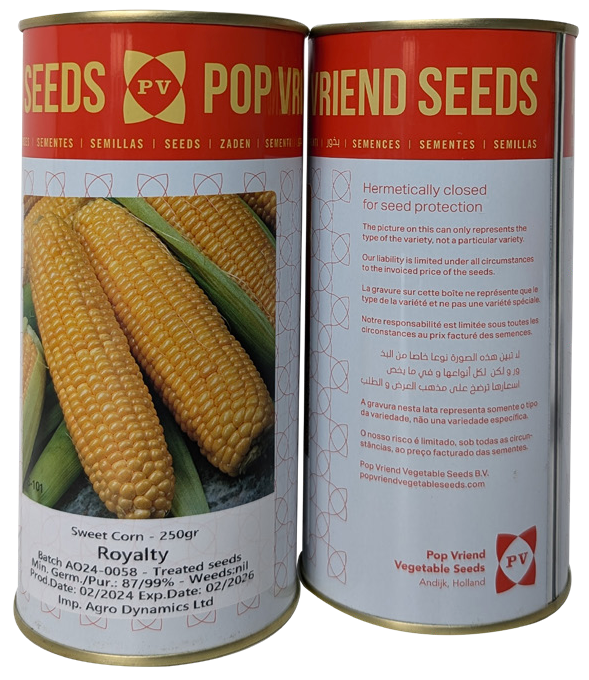 Sweet corn royalty is a medium-sized, high yielding, disease resistant, hybrid seed.